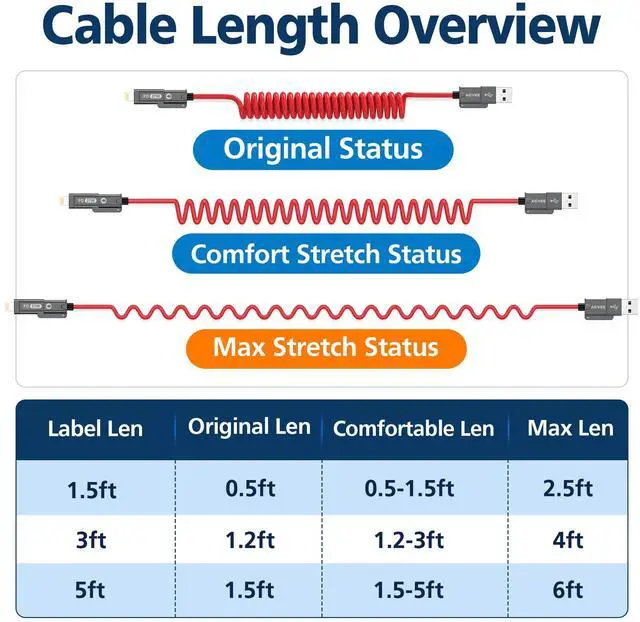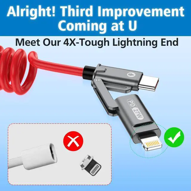 A good coiled cord should stretch out effortlessly with just a gentle pull. Otherwise, you'll have to tug hard, and the cable plug on the charger might pop out of adapter socket. Our coil cord here can dance gracefully in mid-air, only possible with super soft wiring.
