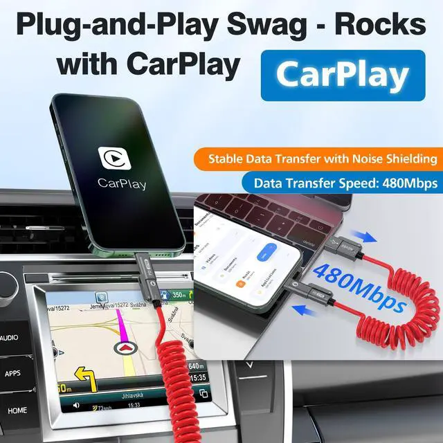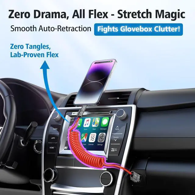 Compatible with iPhone 16 16e 15 14 13 12 11 XS X to CarPlay. For Samsung Galaxy Note20 10, S25 S24 S23 S22 S21 S20 S10 S9 S8, Google Pixel 3 4 5 6 7 8 and other android devices.
