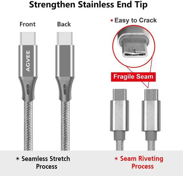 [High-Speed Charging]Take the fast lane and charge your devices 40% faster with this set of Agvee 3A USB C Cables. Measured loop resistance less than 280m, voltage drop less than 0.6V when current is 2.4A. Data Sync Speed is 480Mbps. Built-in 56k pull-up resistor and 0.1uf filter capacitor to filter voltage spikes. Enough copper is used for the conductor, and the hand feel is strong, It's not that light feeling.