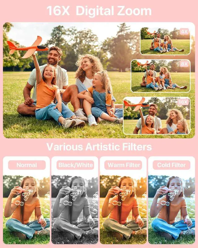 This camera has anti-shake and face capture functions, which can capture every moment of your kids
