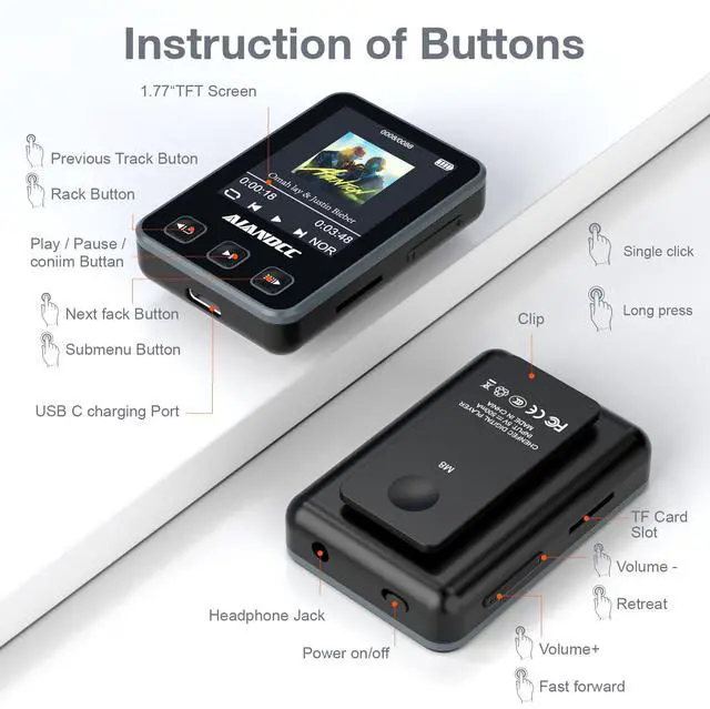 - Sports MP3 Player: This MP3 player features a built-in secure clip and comes with an armband, making it easy to use for various activities, such as jogging, training, and cycling. It's recommended to clip the clip to your neckline or use it with the included armband to prevent it from falling. This eliminates the worry of having to secure your device during exercise, allowing you to focus on the activity and fully enjoy your workout.