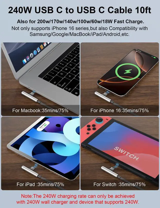 AIAUXAI 240W USB-C Charger Cable Product Description