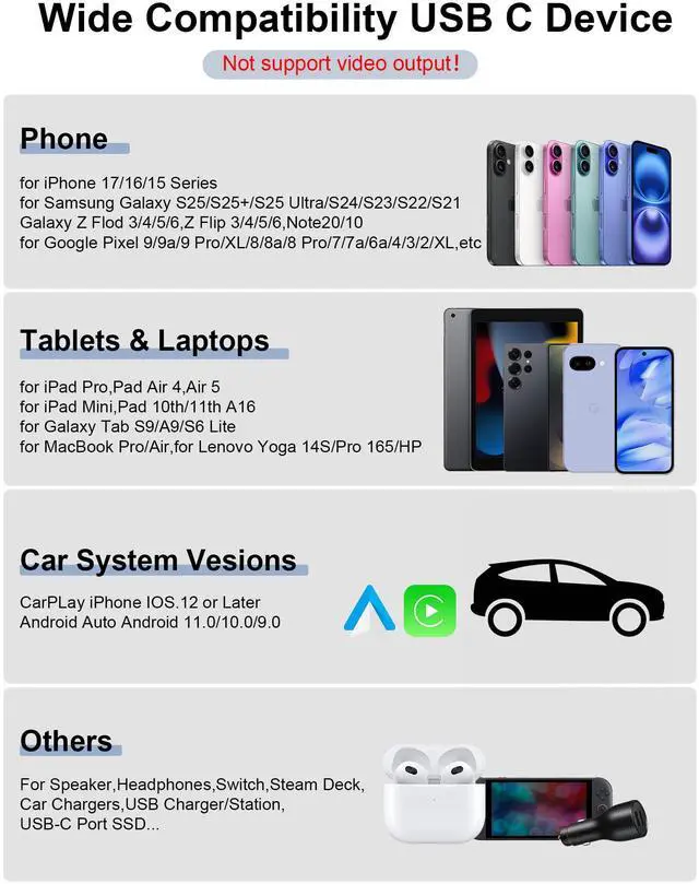| All USBC devices | All USBC devices | For Samsung Galaxy Devices | For Google Pixel/Apple Devices | For Google Pixel/Apple Devices | All USBC devices | All USBC devices |
