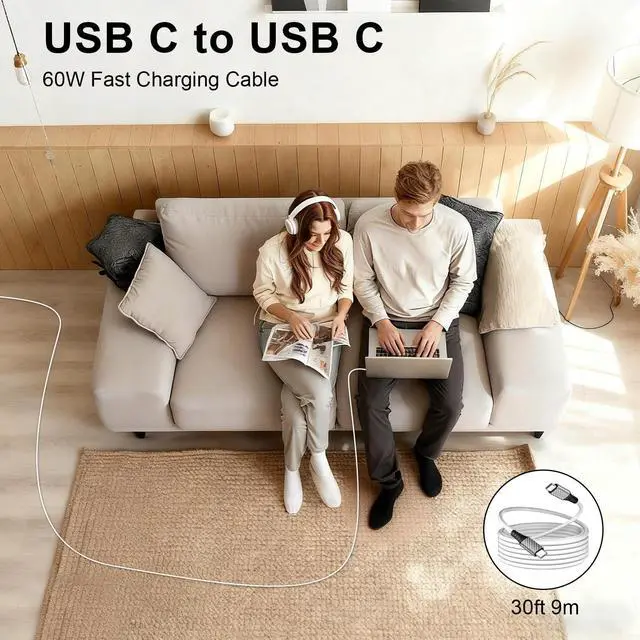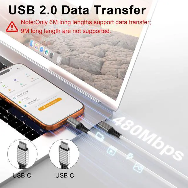 AIAUXAI 6M/9M Long USB C to USB C Cable Product Description