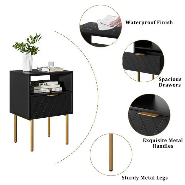 Aienvey Nightstand with Charging Station, Small Side Table, Modern Night Stand with Drawers, Bedside Table for Bedroom, Living Room End Table A good nightstand can meet your needs and demonstrate your good taste. This elegant Aienvey Nightstand is the ideal companion for your modern bedroom. Put it on the side of the bed, put a beautiful vase or photo frame, the whole bedroom becomes different, the elegant vibe fills the whole room, and the mood is relax. In the living room, place a side table like this, grind a cup of coffee, and pick up a book , the happy life begins here. Package Contents: 1 x Nightstand 1 x Parts Kit 1 x Instructions 1 x Packing Box Aienvey Nightstand The light and simple lines of the nightstand makes it a perfect element to blend well with any furniture. Its beautiful style makes it very suitable as a sofa side table, coffee table, accent table etc. The bedside table is a modern piece with large space storage function. The open drawer provide ample room for all your bedside necessities, keeping the area around your bed organized. It will accompany you during moments of reading, of watching while allowing you to enjoy a pleasant life. Aienvey Notes: Children are not allowed to climb on or play with the product for safety reasons.