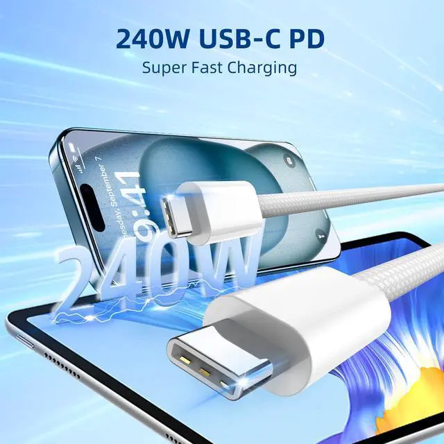![Alt view image 4 of 6 - 240W USB C to USB C Cable [6.6ft, 2 Pack], USB C to C Charger Cord Fast Charging for iPhone 17 Air 16 15 Pro Max Plus/Samsung S25 S24 / MacBook/iPad/Switch](https://c1.neweggimages.com/productimage/nb640/C5JMD26030408OULQCA.jpg)