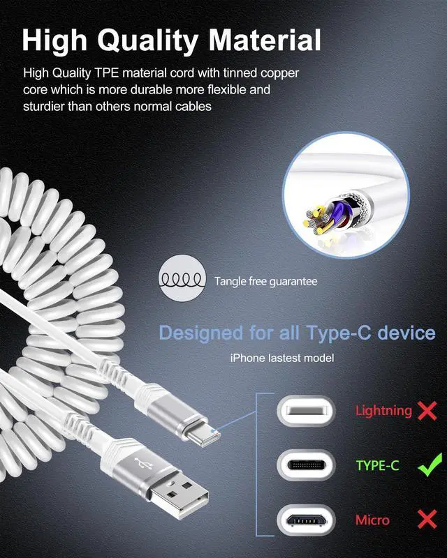 Durable Material: Made from premium-quality TPE material, this iPhone 16 carplay charging cable is built to last, enduring over 45,000 bends without compromising flexibility or durability. Making it a reliable companion for your car's charging needs. It's ideal for your daily use and on the go