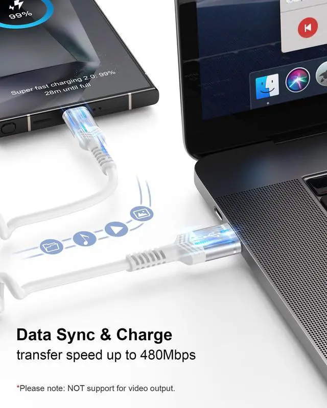 Fast Charging & Data Syncing: Equipped with fast charging capabilities, this USB A to USB-C cable delivers up to 3A current, charging your iPhone 17e 16 Pro Max from 0% to 60% in just 40 minutes. It also supports high-speed data syncing up to 480Mbps, making it ideal for quick data transfers on the go