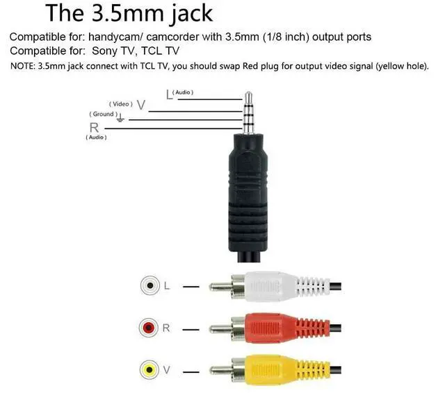 NOTE: 3.5mm jack connect with TCL TV, you should swap Red plug for output video signal (yellow hole).