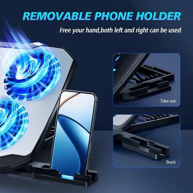 The hidden non-slip baffle prevents your laptop from sliding off, while the foot mats keep the cooling pad stable.