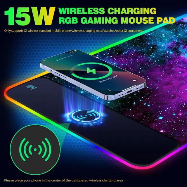 Wireless Charging Capability: This mouse pad features an integrated wireless charging module, allowing seamless charging for compatible wireless charging mice. Simply place your compatible device on the designated spot to initiate charging.