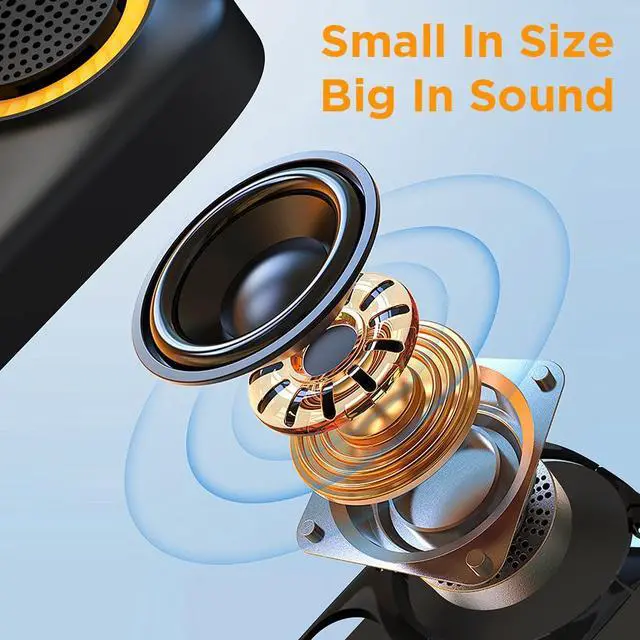 Big In Sound Small In Size & 15H PlaytimeEven in small size, this portable bluetooth speaker's sound is amazing, whether you are working or doing sports outside, you can still listen the music clearly. Up to 15H in 100% volume.