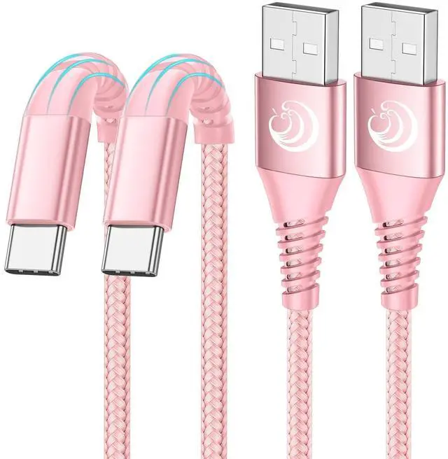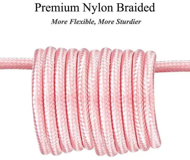 - 2*10ft Nylon Braided Type C Charger Cord - Pink