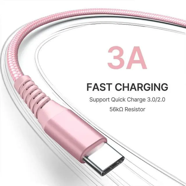 Aioneus Extra Long USB Type C Cable Nylon Braided 10feet (Pink)