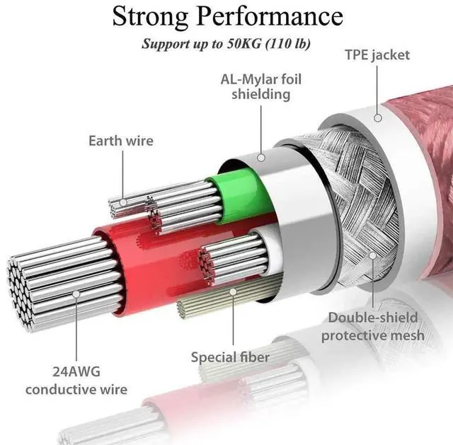 Nylon sheath will help c charging cable from getting nicked or torn. Premium Nylon Double Braided USB C Cable can protect the core and prevent kinks.