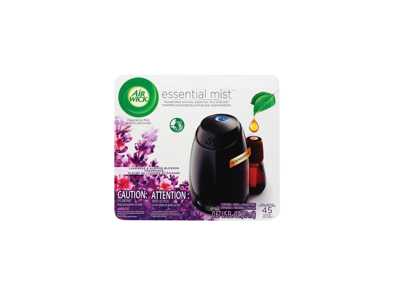 Air Wick 62338-98576 Essential Mist Starter Kit, Lavender and Almond Blossom, 0.67 oz., 4/Carton