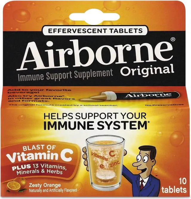 Airborne 30004 - Immune Support Effervescent Tablet, Orange, 10/Box