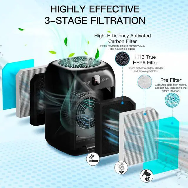 4-Pack filters for AP1501 adopts 3-in-1 H13 Grade True HEPA Filtration System, to capture 99.97% of particles down to 0.01 microns in size.