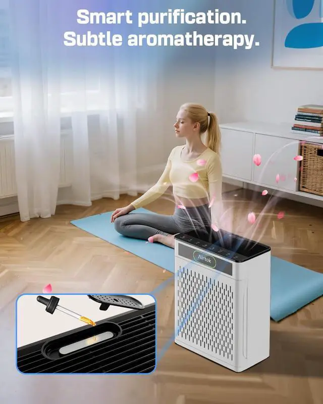 Designed with an essential oil tray, the purifier releases a light fragrance as it cleans the air, creating a fresh and relaxing environment.