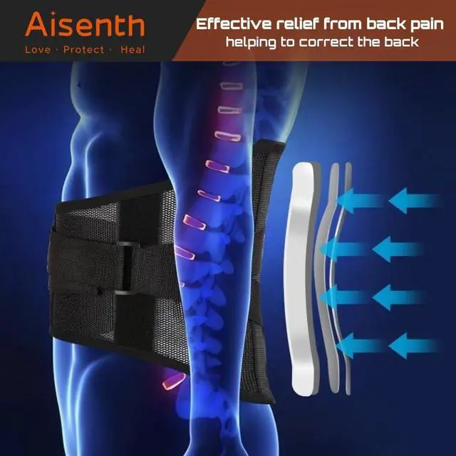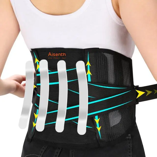 Lumbar Support Back Brace for Men & Women - Relief for Lower Back Pain,Herniated Disc,Sciatica,Honeycomb Mesh Design,Double Adjustable Straps & 4 Memory Steel Supports,Work,Sports & Daily Use