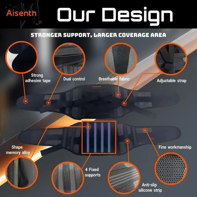 Dynamic Spine Alignment & Custom Comfort:Four memory-shaped manganese steel bars deliver stronger support for your lower back pain,automatically contouring to your spine for a soft-yet-firm fit.It acts as an effective lumbar brace,offering soothing back pain support that adapts effortlessly to movements.