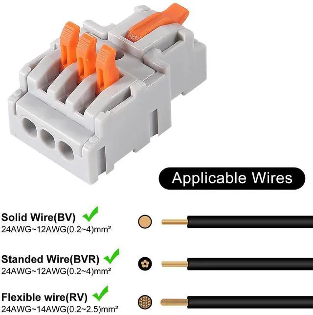 Solid Wires(BV): 0.2~4mm² (24-12AWG)