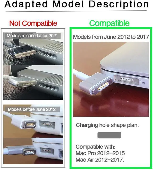 - Please note that your notebook model matches.The product is only compatible with MacBook Air Pro from June 2012 to 2017 (2nd generation magnetic charging head model.)