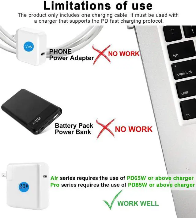 - Mac Air requires a PD 65W 20V or above charger; Mac Pro requires a PD 85W 20V or above charger.