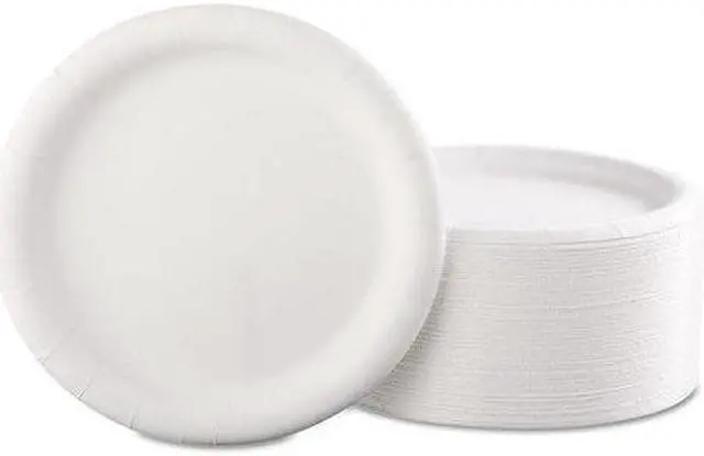 Dependable heavy-duty, coated paper plates keep their shape when full. Premium plates are sure to dress up any party. Grease-resistant. Microwave safe. Dinnerware Type: Plate; Material(s): Paper; Shape: Round; Diameter: 9".