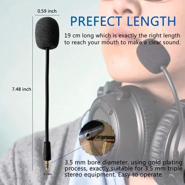 Replacement 3.5mm gaming microphone with foam cover on mics suitable for supports triple stereo equipment.