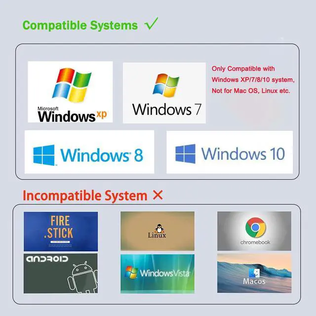 NOT Supports:Vista, Linux, Mac OS, Android, Chromebook