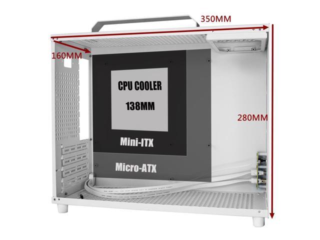 ALAMENGDA V500 Mini Portable M-ATX/ITX Computer Case, MINI-Tower CASE, Full Side Acrylic Transparent DIY Desktop Case with handle, Support 320MM GPU Size, White