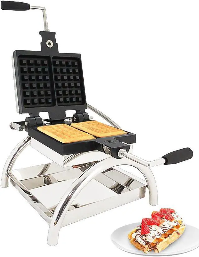The elegant look of this Belgium Waffle Iron looks nice and suits any kitchen. The machine makes two square-shaped waffles with big deep wells at a time. Cast aluminum molds covered with ensure even heating and the perfect color of waffles.