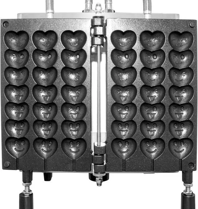 Three waffles on a stick with a lovely heart-shaped design will be ready in a few minutes. This waffle stick maker with a power consumption of 1.56kW is perfect for small cafes street food points shopping malls etc.