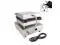 This industrial press type waffle maker cooks four square 4.50 x 4.50 waffles in a few minutes thereby ensuring high productivity. Stainless steel construction and nonstick cooking plate provide long service life and make the machine suitable for intensive commercial use.