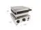 This waffle iron cooks six fluffy waffles which can be served on a stick. The waffle size is 2.30 x 3.90 just perfect for a snack to take away. The machine is press type and made of stainless steel which is known for durability and reliability.