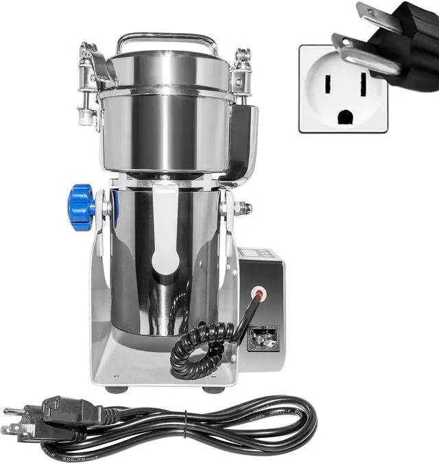 This electric wheat grinder copes with a variety of spices herbs beans etc. Grind up to 300 grams of raw materials in a few minutes! The machine is made of stainless steel equipped with a digital timer and overload protection button. The power consumption is 1500W.