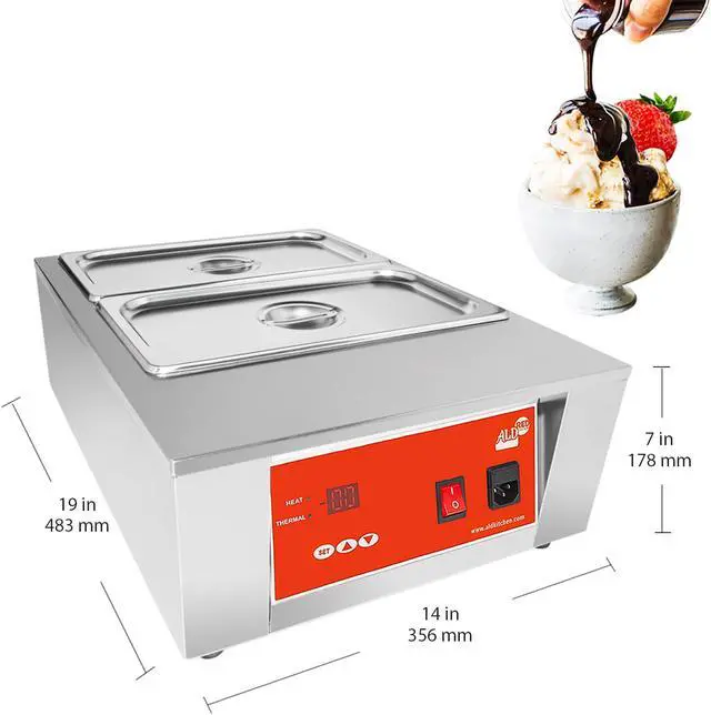 This digital Automatic Chocolate Tempering Machine is designed for heating and Warming Chocolate to create fresh and delicious desserts. Beautiful and compact design solution makes this Melting Pot easily portable. Every chocolate temperer has a digital display panel with temperature adjusting buttons and power on/off switch which makes it extremely simple to use. The appliances are made of high grade stainless steel and work on 110V or 220V. We offer Chocolate Warmer Machines with different number of tanks and capacities: