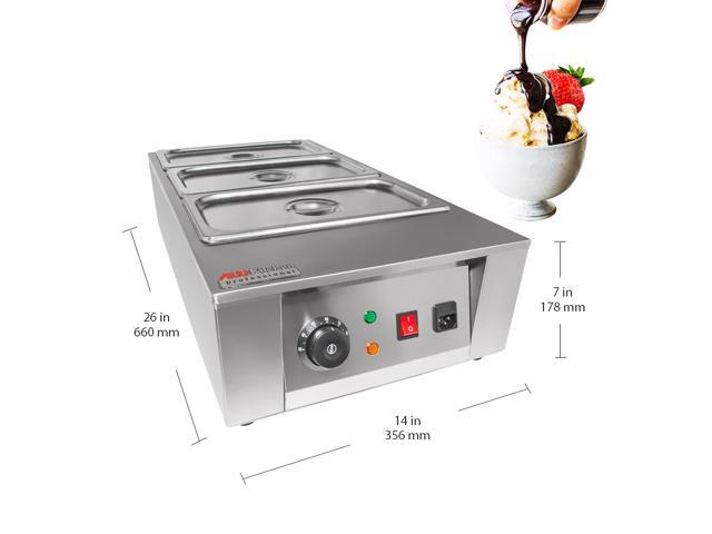 - SOLID CAPACITY: Melt 18 lb (8 kg) of solid chocolate in this manual chocolate melting pot machine. Huge quantities of heated chocolate make it easy to create a lot of desserts fast.