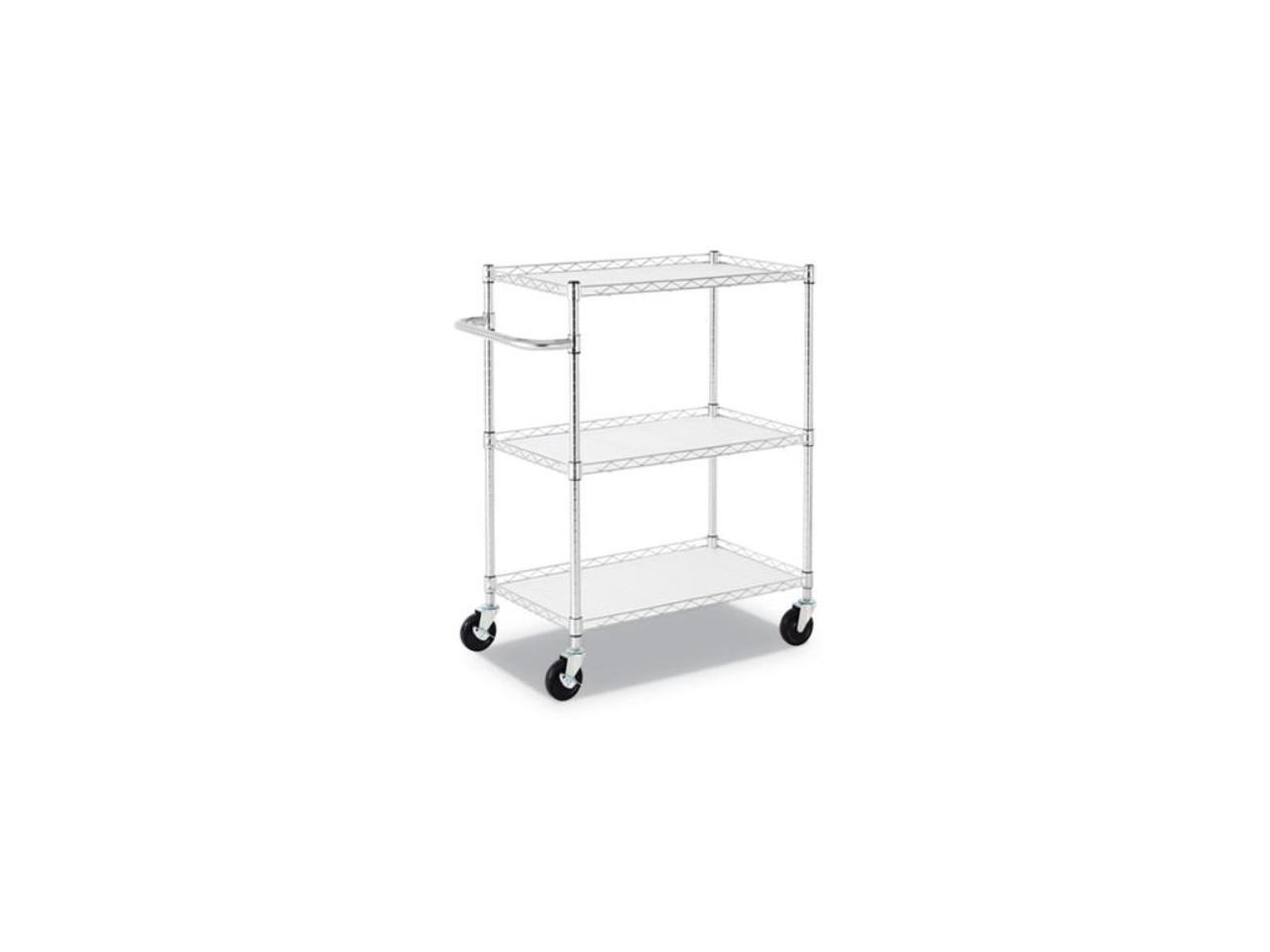 Alera ALESW333018SR 3-Shelf Wire Cart with Liners, 40.00" x 34.50" x 18.00", Silver, 600-lb Capacity