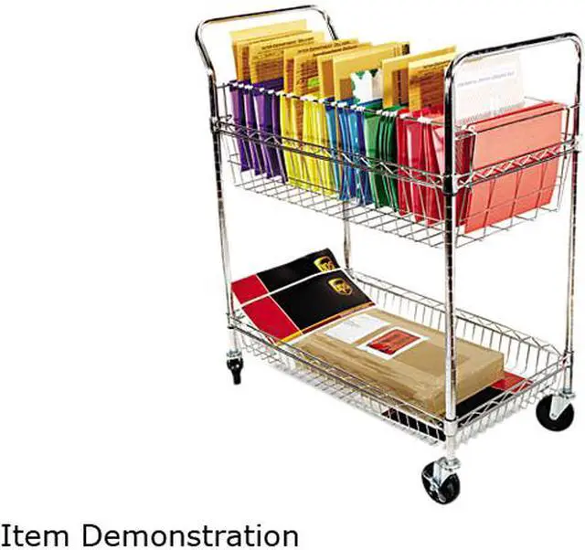 Ideal mobile carry-all cart. Use to haul mail, packages, boxes, books or files around the office. Top basket can accommodate letter- or legal-size files with included adjustable file rods. 7" deep top basket. Sturdy bottom basket with 4" raised sides to prevent larger items from sliding off during transport. Heavy-duty metal tube and wire construction resists scratches and withstands constant use. Commercial grade 4" casters with two locking. Snaps together in minutes without tools. Shelf and basket height adjustable in 1" increments. Color: Silver; Color Family: Silver; Capacity (Weight): 500 lbs; Caster/Glide/Wheel: Four 4" Front Nylon Casters.