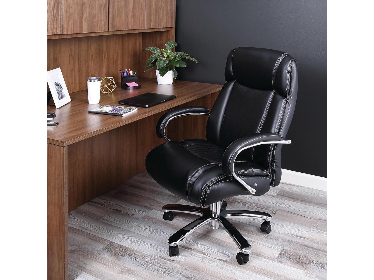 Make a statement with this ultra comfortable and cushioned chair for the big and tall user. Heavy duty chrome base and mechanism are reinforced and help to evenly distribute weight...
