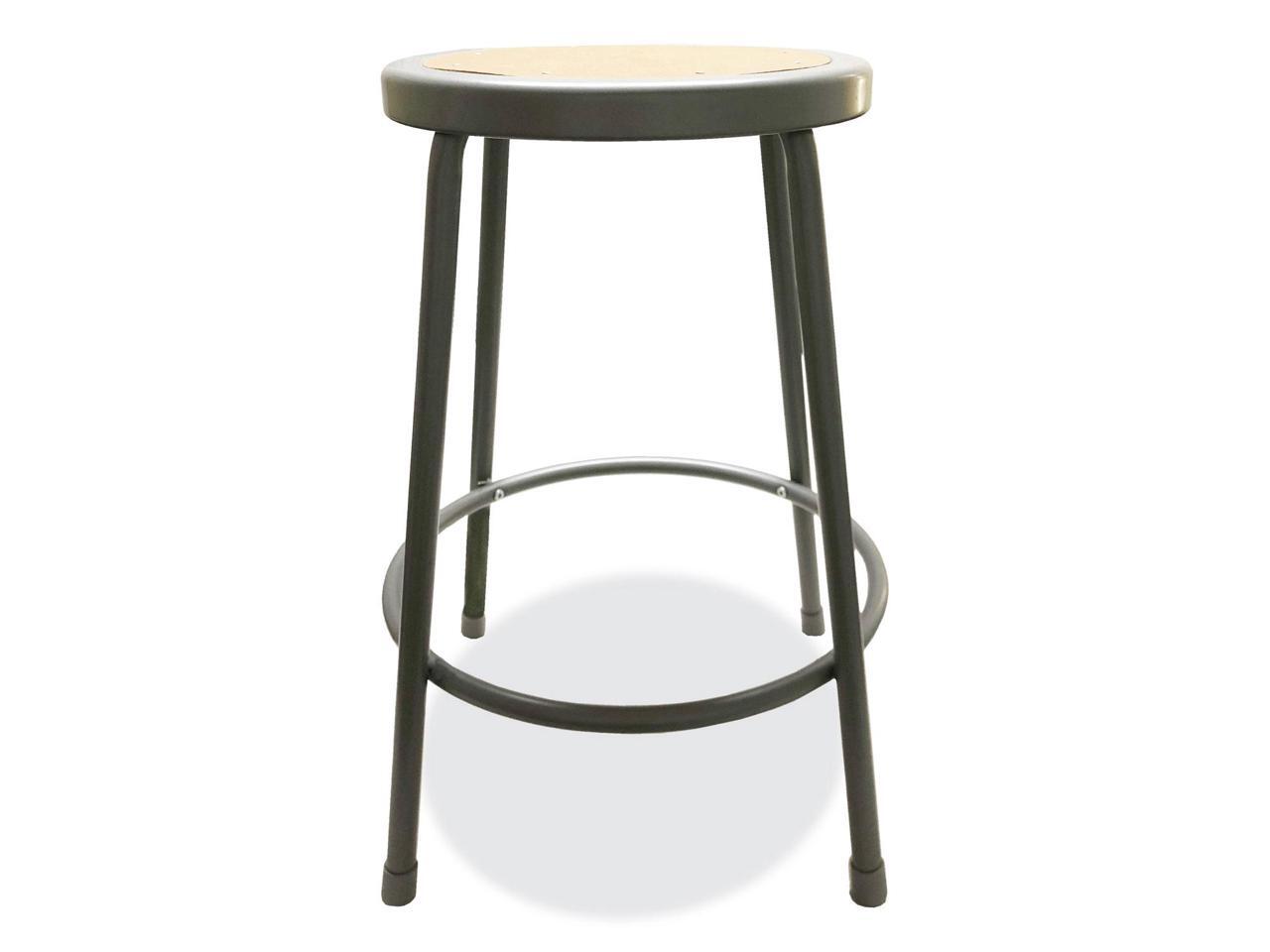 - Ideal in the shop, garage, science or art lab, factory floor, or anywhere where durability matters most. Warp-, crack-, and chip-proof Masonite board is riveted to the seat pan. Built-in foot ring provides a place to rest your feet when seated. Includes non-marring floor glides. Stackable to save space.