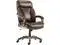 Coil spring cushioned seat provides long-lasting, mattress-like comfort. Ergonomic side bolsters for added support. Adjustable lumbar support for optimal back positioning. Integrated cushioned leather headrest and padded leather armrests. Five-star base with protective foot zones. Generously cushioned waterfall seat reduces pressure points at the back of the knee. Seat/Back Color: Brown; Arms Included: Yes; Arm Style: Padded Loop; Pneumatic Seat Height Adjustment: Yes.