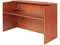 Commercial-grade laminate worksurface and side panels are water-, scratch- and stain-resistant. Bow-shaped transaction counter and high-sided panels for privacy. Protective 3 mm edge banding helps prevent damage from bumps. Two grommets for cable and wire management. Leveling glides help compensate for uneven floors. Use alone or combine with Reversible Reception Return to create an "L" workstation. Color: Medium Cherry; Top Shape: Bow Front; Rectangular; Top Material: Woodgrain Laminate; Top Thickness: 1".