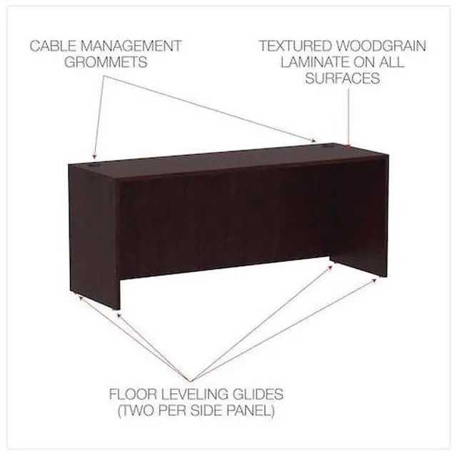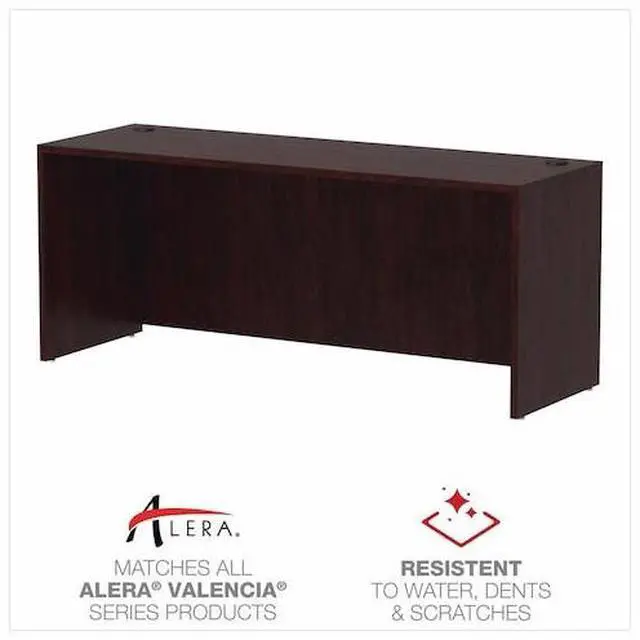 Alera Valencia Series Credenza Shell, 70.88 w X 23.63 d X 29.5 h, MahoganyDurable edge banding. Two wire management grommets. Full-height modesty panel.