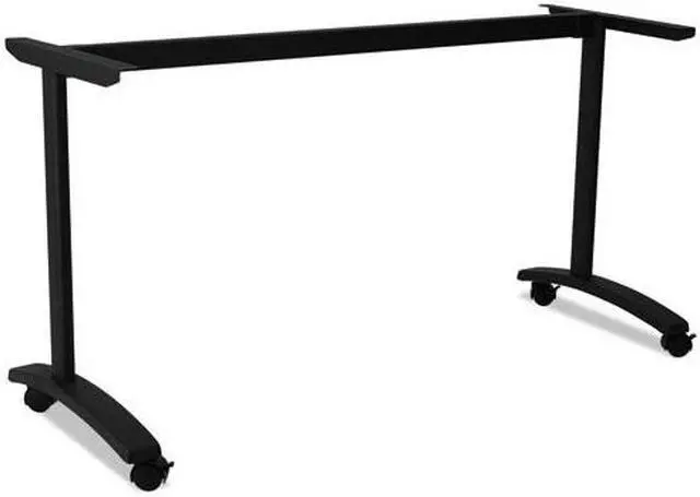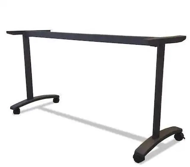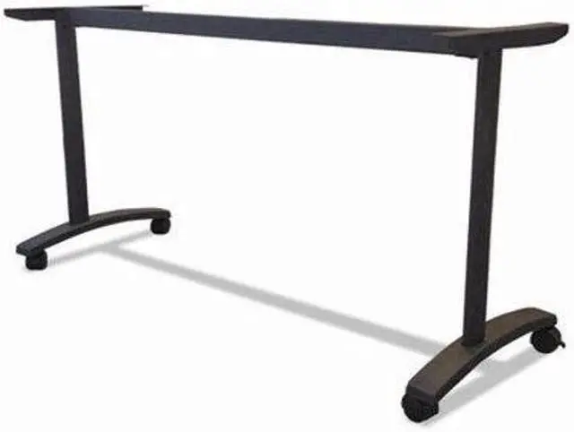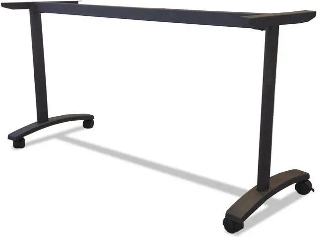 Durable, powder-coated steel T-leg table base resists chipping and scratching. Four locking casters for mobility or four glides for fixed usage. 29" high with top. Top and Base sold and shipped separatelyORDER BOTH. LargeFor 60" to 72" tops. Color Family: Black; Base Color: Black; Overall Width: 54"; Overall Depth: 19.75".