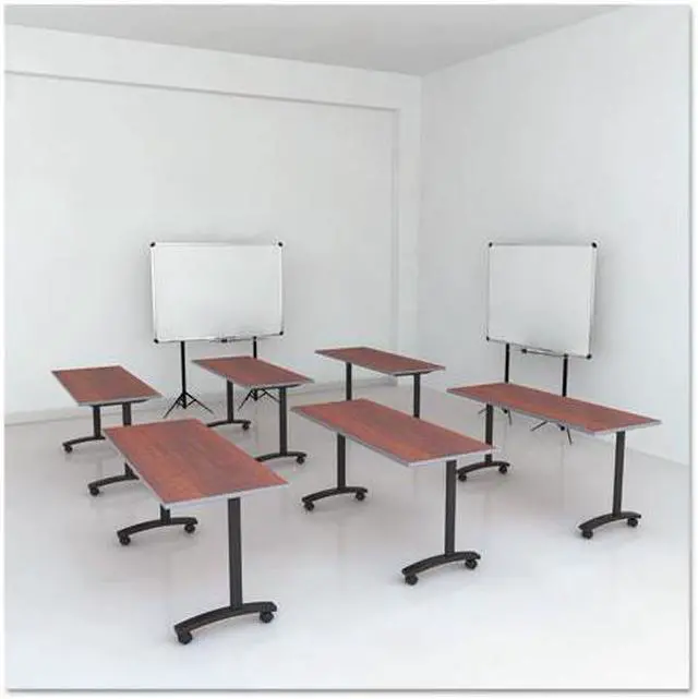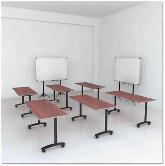 Collaborate more easily -- rearrange tables in multiple configurations to suit the environment and moment. Durable, water-, scratch- and dent-resistant woodgrain laminate tops with protective 3 mm edge banding. Cable-management grommets and wire troughs keep everything neat and organized. Included secure ganging clips allow you to join tables in any configuration. Tops and bases sold separately -- ORDER BOTH.