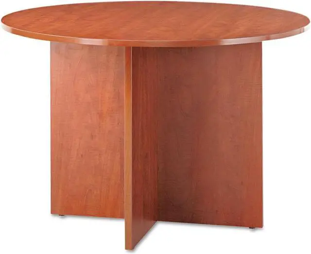 Alera Valencia Round Conference Table w/Legs, Modern Walnut.