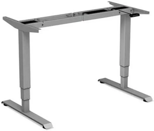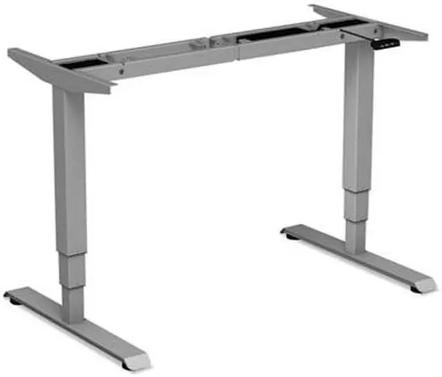 Set the perfect height when sitting or standing, when you choose this electric, three-stage, reversed-telescoping height-adjustable table base. Durable, powder-coated steel base features a 285 lb maximum lift capacity (maximum capacity includes the sold-separately table-top), a 25.75" lift/lower range (from 25" to 50.75") as well as a standard up-and-down control set. Dual-motors provide speeds of up to 1.5" per second (depending on load); and though designed specifically for use with ALETT Series Reversible Laminate Rectangular Table Tops (sold separately), these steel-frame bases attach to most common rectangular tops ranging from 47" to 72" in width and 24" to 36" in depth. Integrated crossbar supports prevent racking while ensuring overall stability. Adjustable leveling glides help you compensate for uneven floors. Base includes integrated cable-management channels and a 10 ft power cord. Quick setup with fold-out legsrequires minimal assembly. Table tops and bases are sold and shipped separatelyORDER BOTH. Color Family: Gray; Base Color: Gray; Overall Width: 48.06"; Overall Depth: 24.35".